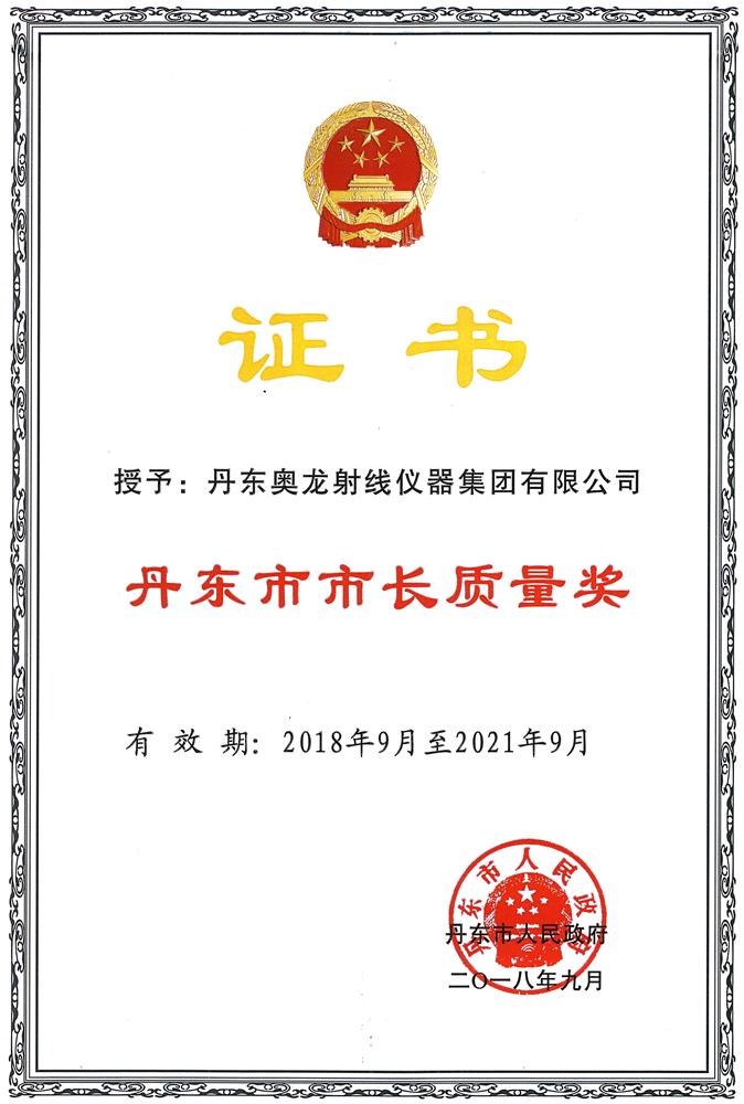 9月3日,市政府召開全市質量大會,丹東奧龍射線儀器集團有限公司、遼寧五一八內燃機配件有限公司被丹東市政府授予2018年市長質量獎。奧龍集團董事長李義彬在會上作交流發言并向全市企業發出爭創品牌的倡議。